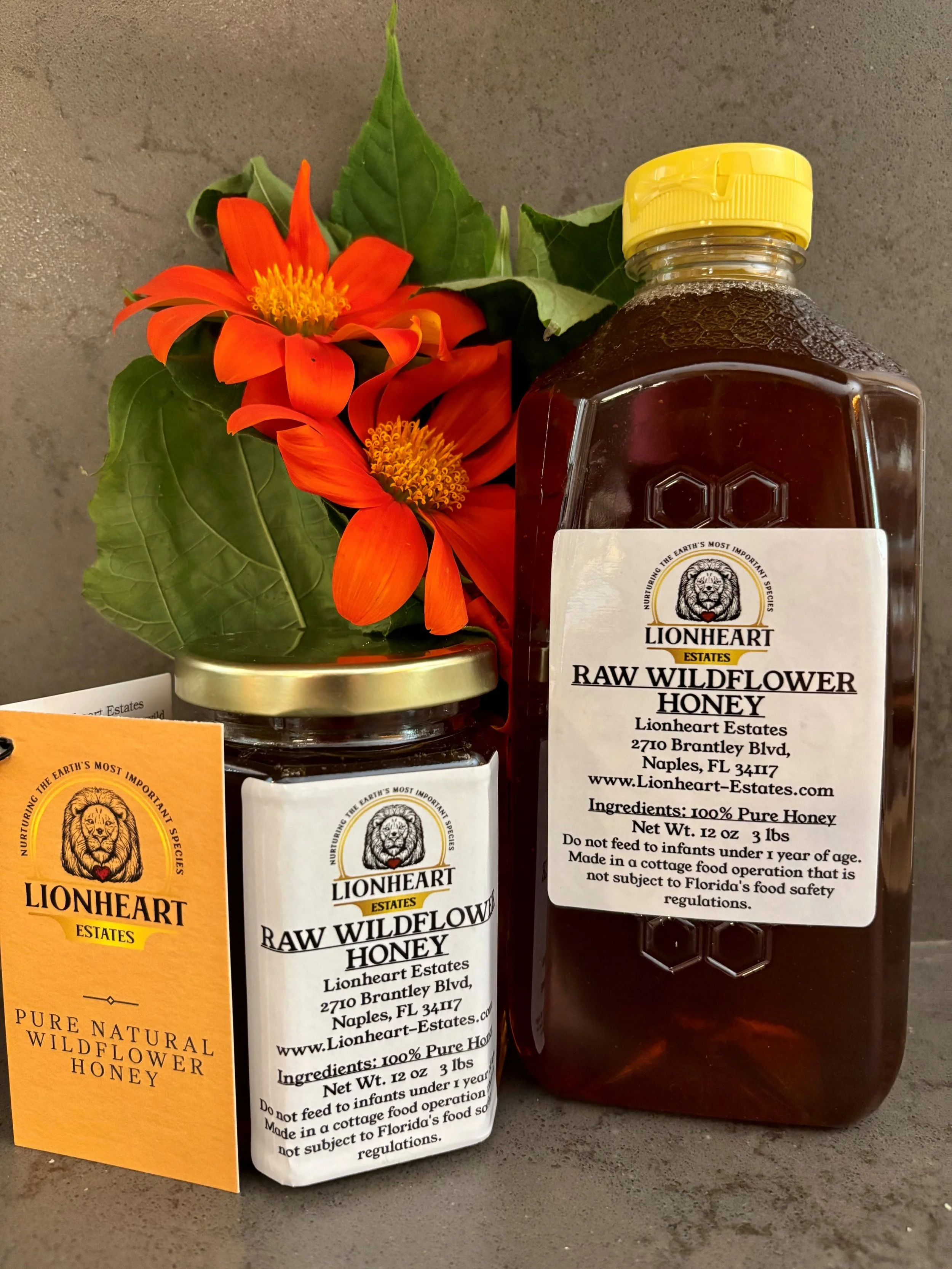 At Lionheart Estates, our boutique apiary supports native pollination and produces seasonal wildflower honey… raw, local, and produced under Florida’s Cottage Food Law.